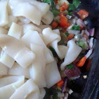 Agregar los calamares cortados en aros de 1 cm.