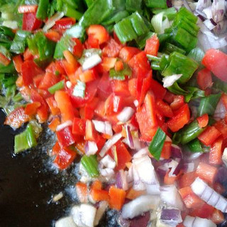 Saltear las verduras en oliva.